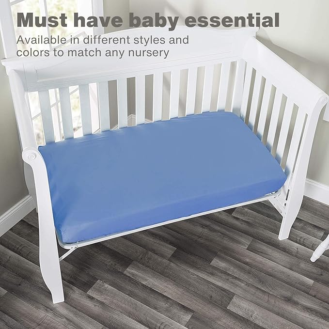 Everyday Kids Fitted Crib Sheet, 100% Soft Breathable Microfiber Baby Sheet, Fits Standard Size Crib Mattress 28in x 52in, Light Blue Nursery Sheet