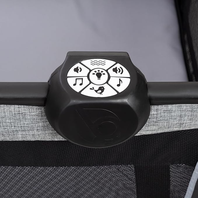 - Electronic music center with volume control, nightlight, and vibration; includes two styles of music and nature sounds