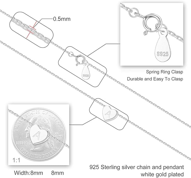 - SIZE: Size of the sterling silver initial necklace is 16"+2.5" adjustable chain, tiny heart initial necklace, perfect birthday gifts for girls teen girl.