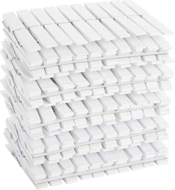 - Durable Versatility: Juvale's white clothespins wood set of 100 provides a reliable solution for laundry and crafts. Crafted from sturdy wood with a metal spring, these wooden clips offer enduring use both indoors and outdoors