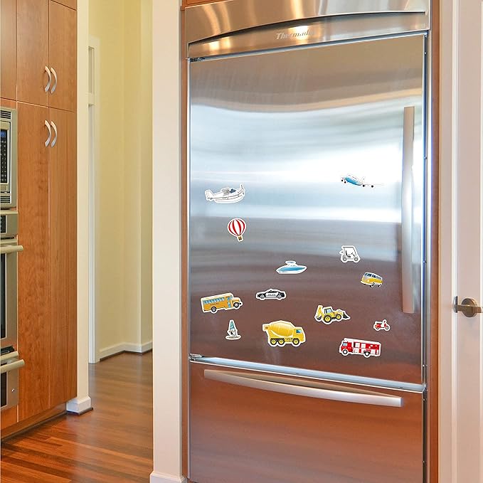 - Visualized Knowledge:Help young students visualize and learning common vehicles and construction machines, enhancing sense of recognition. Include 1X double sided magnetic board (9.3”X 6.5” folded) and 38 vehicle magnets (about 1.5--3 inches in diameter)