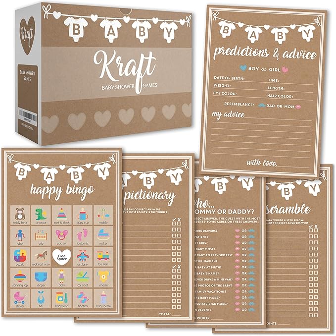 - TRANSFORM YOUR BABY SHOWER INTO AN EPIC CELEBRATION with our fun and hilarious baby shower games kit for all; Your guests will have a blast playing all 5 games; The perfect baby shower activities to liven up your baby shower party