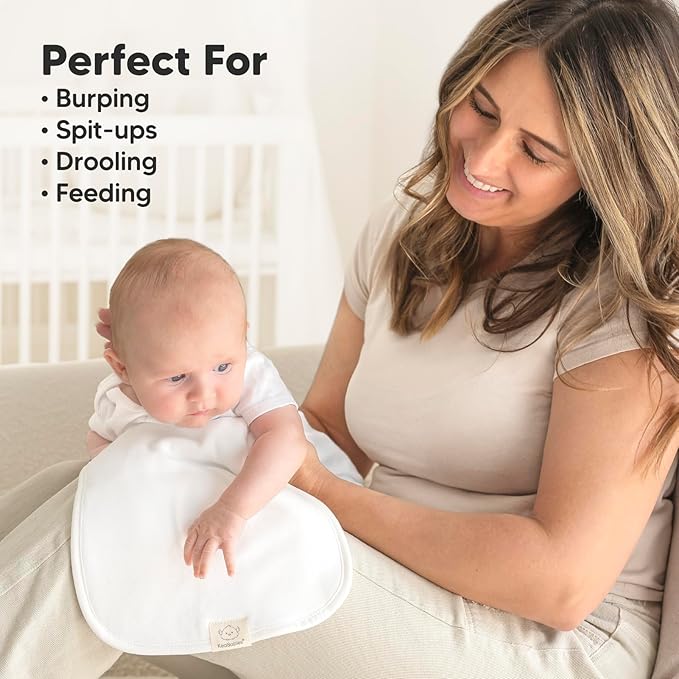 Organic Burp Cloths Baby Boy & Girl - 5-Pack Super Absorbent Cotton Burping Cloths for Babies, Soft & Plush Newborn Spit Up Rags, Infant Towels for Milk Spit Up, Unisex, Large 21" x 10" (Soft White)