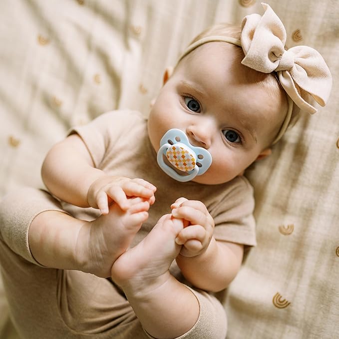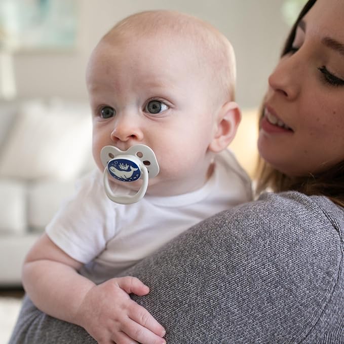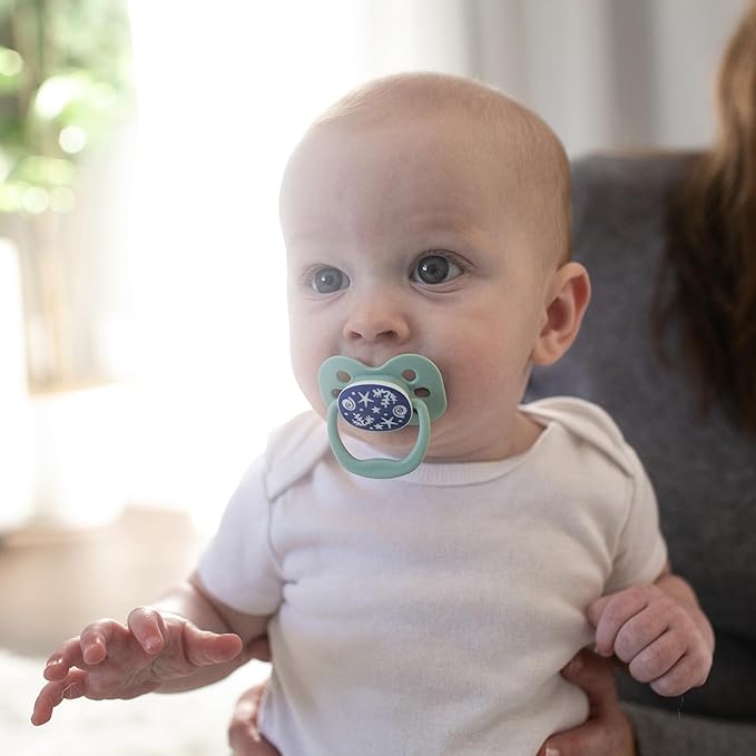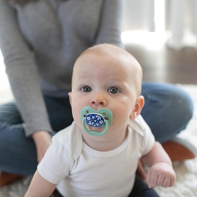 Dr. Brown's Advantage Glow-in-the-Dark Baby Pacifier, Fully Symmetrical Soother with Soft Silicone Bulb, Blue Sunrise-Blue Ocean, 0-6m, BPA Free, 4 Pack