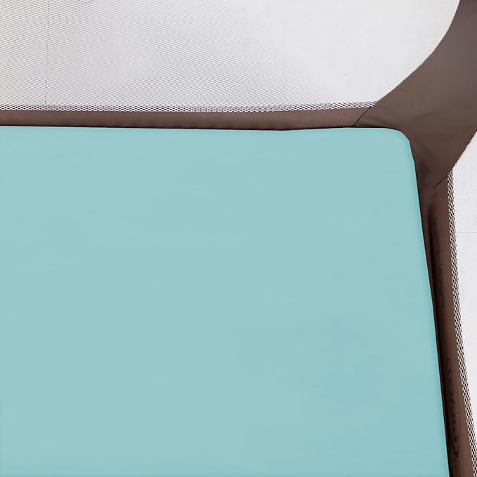 Biloban Pack and Play Sheets Fitted, 2 Pack Pack and Play Sheet Fits for Graco Pack n Play Mattress, Neutral Playard Sheets for Baby Boys and Girl, White & Aqua, 38”X 26”