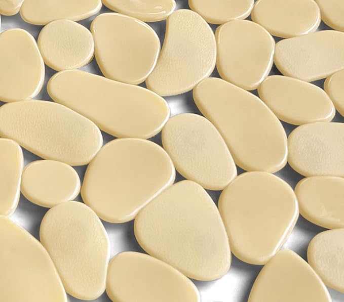 - Clean and machine washable for years of safe, healthy, worry-free use. Spaces between “pebble” shapes offer drainage channels to keep water flowing through the bath mat.