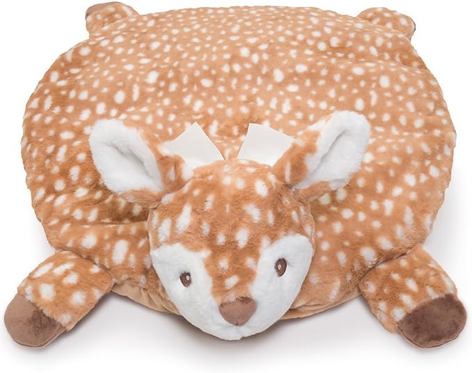 Bearington Baby Lil’ Willow Tummy Time Mat, 30 x 30 Inch Fawn Plush Stuffed Animal Blanket, Woodland Nursery Décor