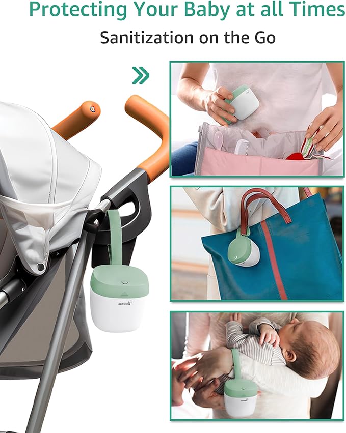 GROWNSY Pacifier Sanitizer Portable, UV Light Sanitizer on The Go, USB Charging Sanitizer Case, Mini Pacifier Sanitizer 99.99% Cleaned in 59 Seconds (Green)