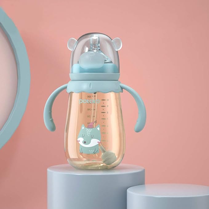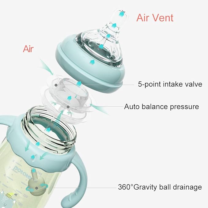 - 👪 3. UNIQUE DESIGN - The ergonomic design makes this bottle comfortable for both parents and babies to hold, which brings a good mood to mothers and babies. And the rotating handle is perfect to protect the child's wrist and can help baby control drinking.