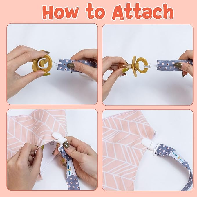 - Multifunctional Usage: These pacifier leashes are usually used for soothies, teethers,burp cloths, teething rings and toys, baby blankets, drool bibs. It is an universal pacifier clip and fits to your favorite brand of pacifier and soother.