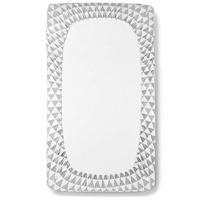 BaeBae Goods Crib Sheets for Baby Boys and Girls, 4 Pack, Soft and Breathable Jersey Knit Fitted Sheet Set, Cute Gender Neutral Nursery Mattress Bedding, Universal Fit (Grey Triangles)