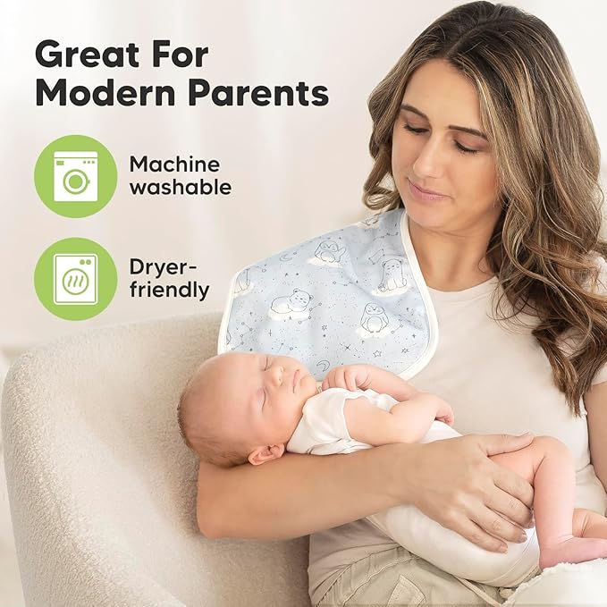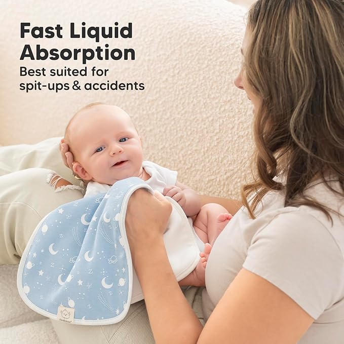 Organic Burp Cloths Baby Boy & Girl - 5-Pack Super Absorbent Cotton Burping Cloths for Babies, Soft & Plush Newborn Spit Up Rags, Infant Towels for Milk Spit Up, Unisex, Large 21" x 10"(Constellation)