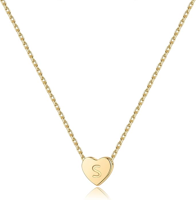 - SIZE: Size of the sterling silver initial necklace is 16"+2.5" adjustable chain, tiny heart initial necklace, perfect birthday gifts for girls teen girl.