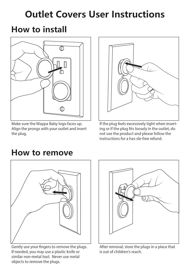 - QUICK & EASY WAY TO HELP YOU PROTECT YOUR TODDLER from accidents and electrocution! The Wappa Baby outlet plug covers are here to offer you that much-needed peace by minimizing the chances of your little explorer reaching into your home’s electric sockets.