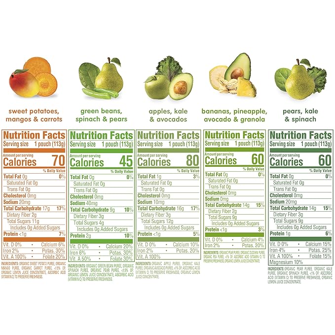 Happy Baby Organics Stage 2 Baby Food Pouches, Gluten Free, Vegan & Healthy Snack, Clearly Crafted Fruit & Veggie Puree, Fruit & Veggie Variety Pack, 4 Ounces (Pack of 10), Amazon Exclusive