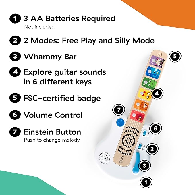 Baby Einstein Strum Along Songs Magic Touch Wooden Toy Guitar with Whammy Bar, Montessori Musical Learning Toy with Lights, 12mo+