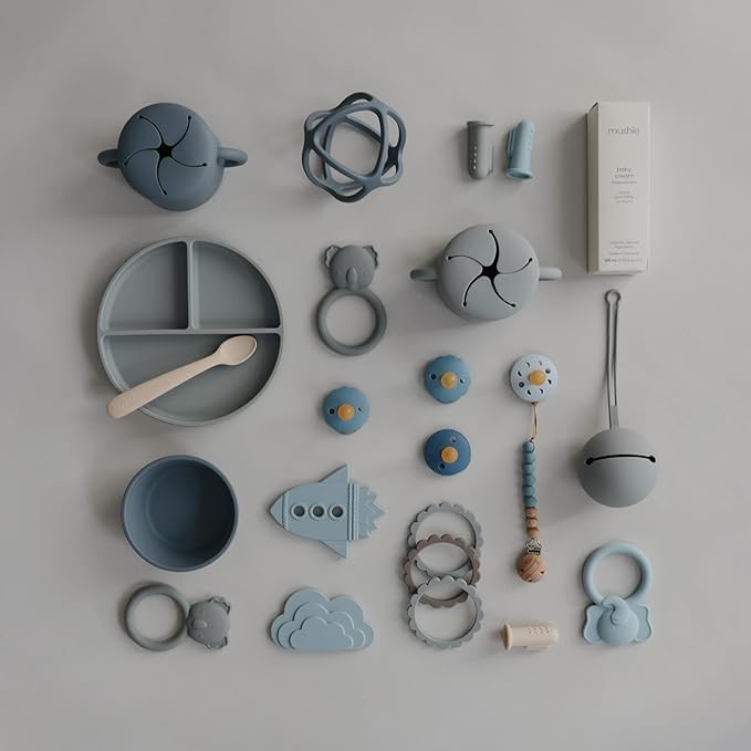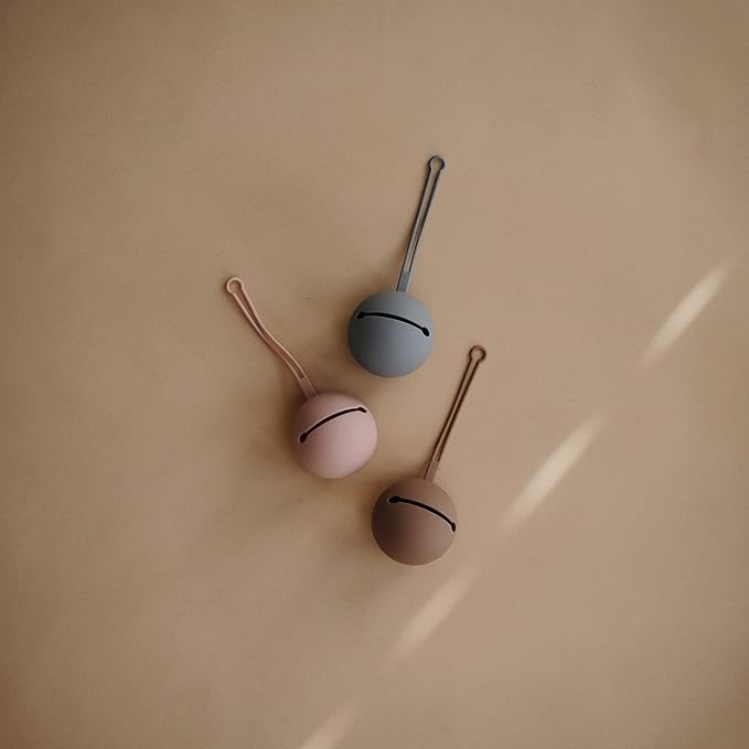 - The Mushie silicone pacifier holder keeps your baby's pacifiers clean and ready to use. Made from a soft silicone with a convenient strap, this pacifier case is easy to attach to a stroller or diaper bag.