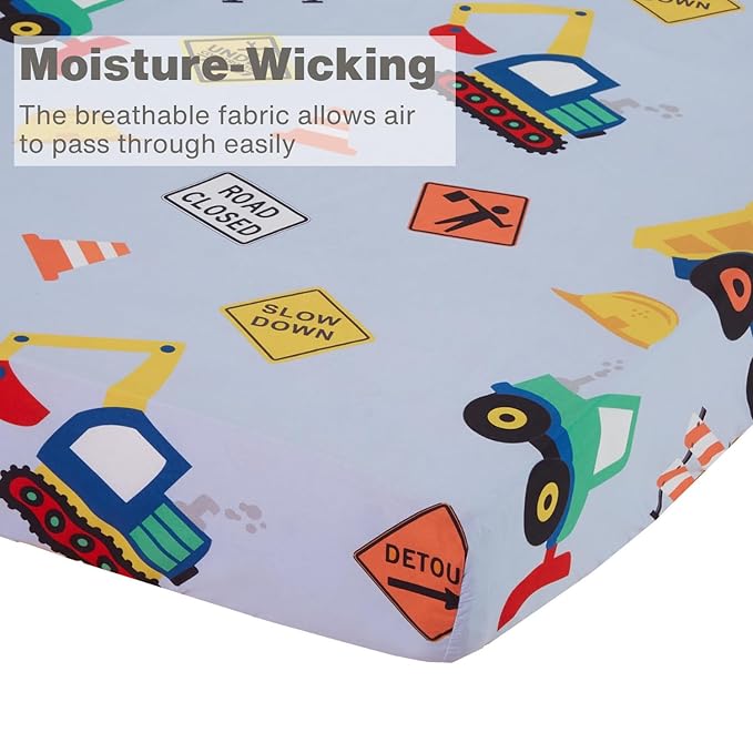Everyday Kids Baby Boy Fitted Crib Sheet, Under Construction, 100% Soft Breathable Microfiber Baby Sheet, Fits Standard Size Crib Mattress 28in x 52in, Nursery Sheet