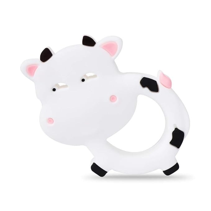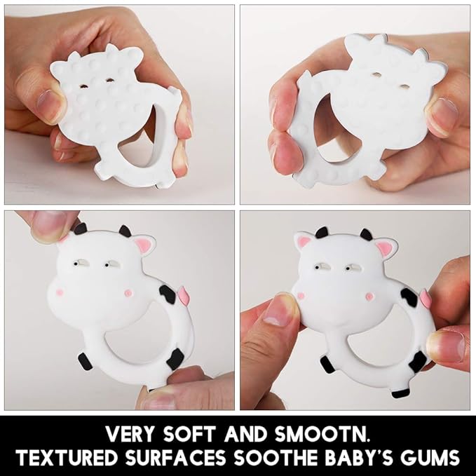 Baby Silicone Teether,Sensory Chew Toys,BPA Free Soft and Effective Infant Teething Pain Relief Toys,Freezer Safe,Food Grade Silicone,Best Shower Gift for Boys and Girls (Cow)
