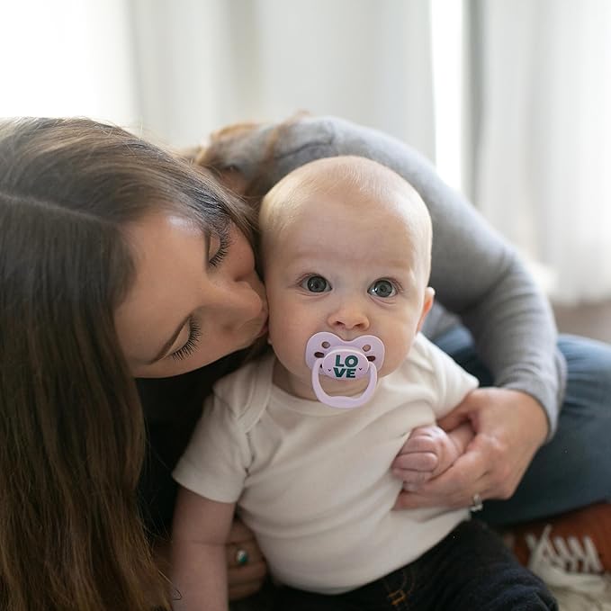 Dr. Brown's Advantage Baby Pacifier, Fully Symmetrical Soother with Soft Silicone Bulb, Lavender Love, 0-6m, BPA Free, 2 Pack