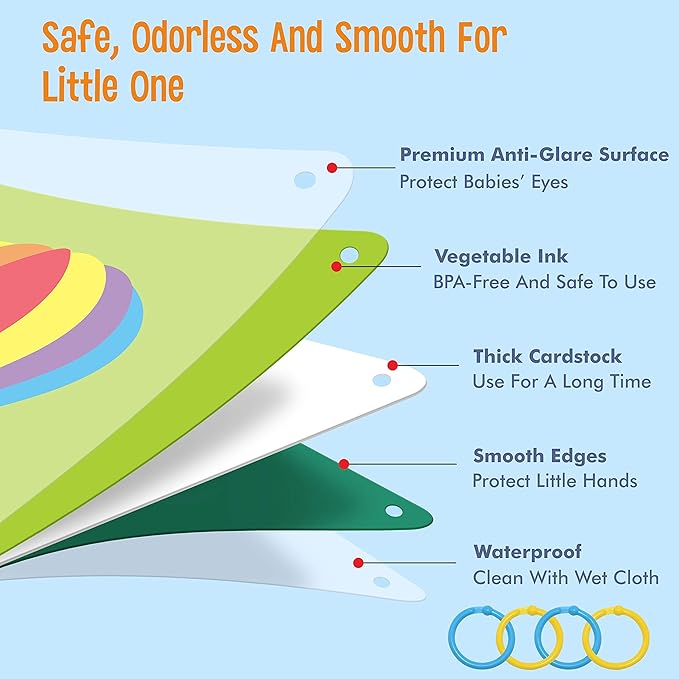 - Usage Innovation: Compact pack 100 PCS color-coded baby flash cards, double-sided 200 pages cover various Shapes, Geometric Figure, etc. Grouped by ages into 4 levels for step-by-step learning with sorting rings.