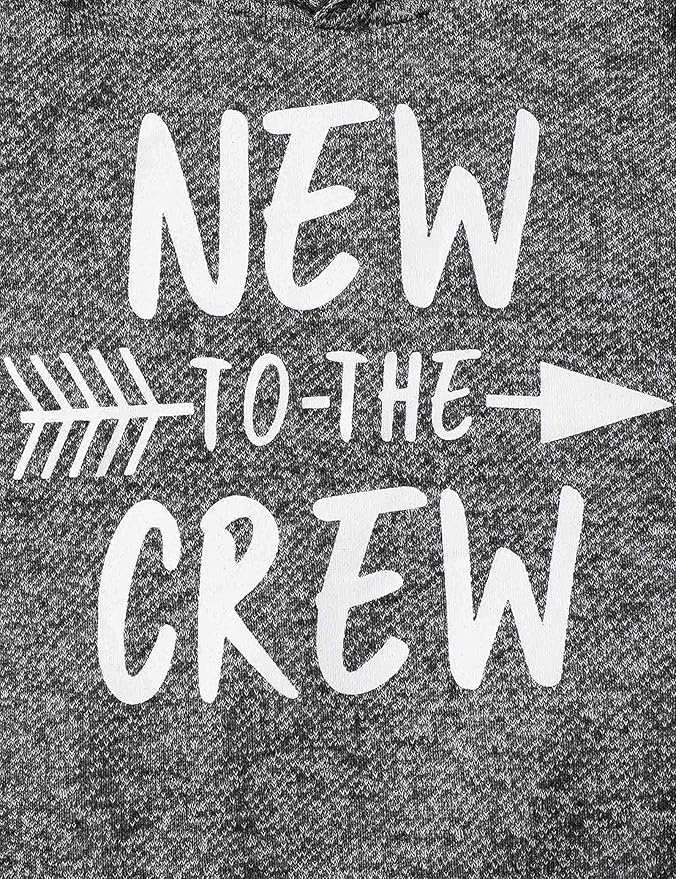 - Design:Let your little one make a statement with this stylish baby boy's clothes set. The gray hooded top is printed with 'New to the crew' monogram print giving it a cool and stylish look. The army green camouflage pants are also printed with the 'little man' monogram print, adding a touch of uniqueness to the set. This outfit is perfect for your baby boy to make a statement while remaining comfortable and stylish.