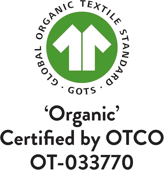 - 100% ORGANIC COTTON: Certified by GOTS: GOTS is the leading world-wide standard for products made in sustainable manufacturing facilities without the use of synthetic pesticides, are non-toxic, PVC free and made without heavy metal phthalate dyes