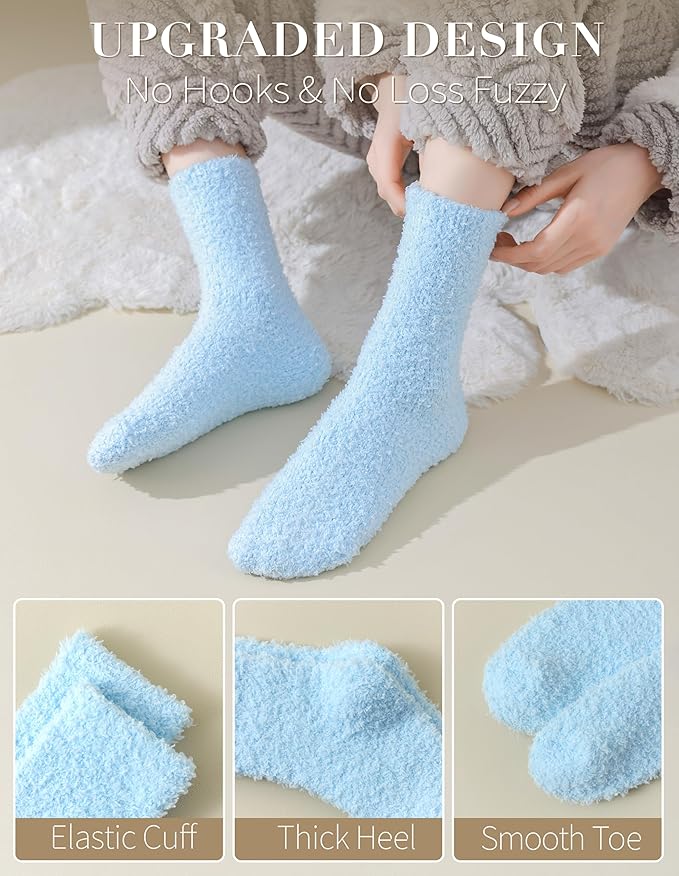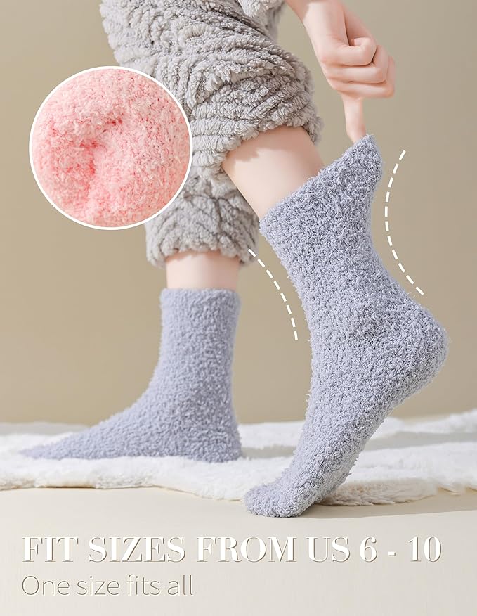 - Cloud-like Softness and Warmth: Indulge your feet with incredibly soft microfiber fuzzy socks that feel like stepping on a cloud, for exceptional warmth and coziness