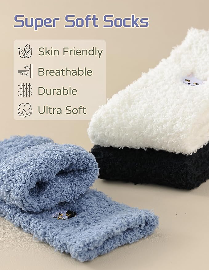 - Cloud-like Softness and Warmth: Indulge your feet with incredibly soft microfiber fuzzy socks that feel like stepping on a cloud, for exceptional warmth and coziness