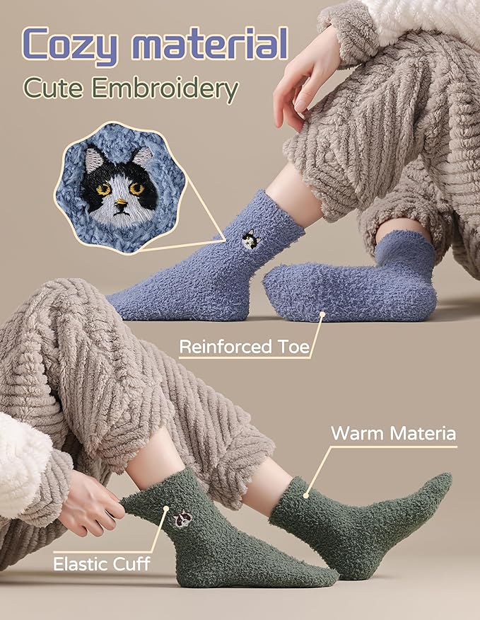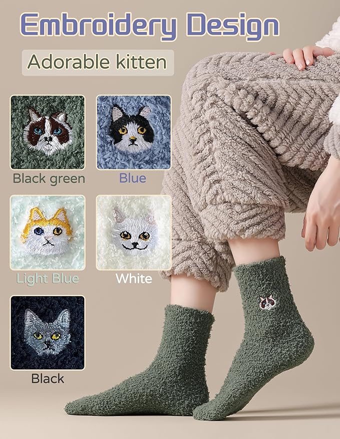 - Playful Cat Lover Gifts: Delight women and teen girls with 5 pairs of ultra-adorable designs embroidered cat socks; these socks are the fluffiest, coziest stocking stuffers, and charming Christmas surprises for every cat lover