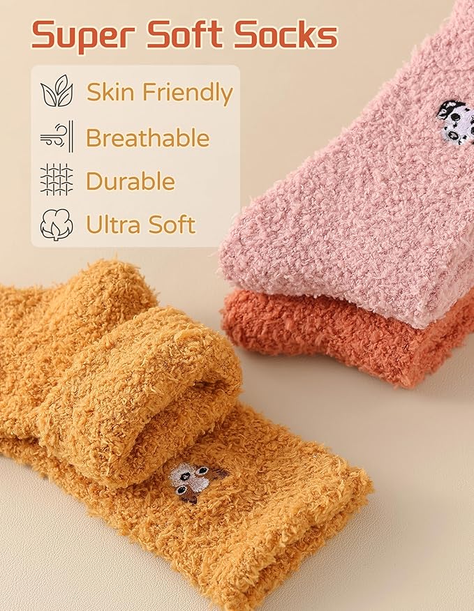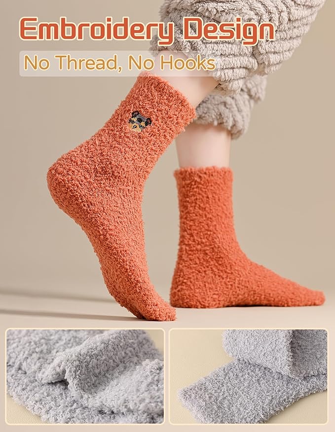 - Cloud-like Softness and Warmth: Indulge your feet with incredibly soft microfiber fuzzy socks that feel like stepping on a cloud, for exceptional warmth and coziness