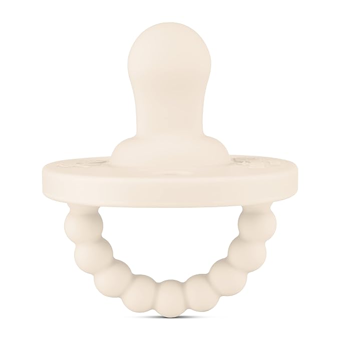 - SOOTHING AND COMFORTABLE – Soft nipple on baby paci gently mimics breastfeeding for natural palette development while soother feels good on baby's gums.