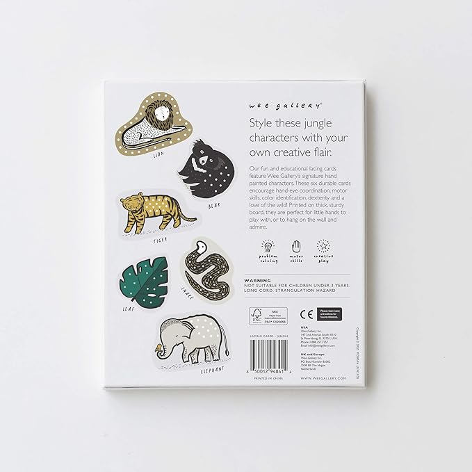 Wee Gallery Jungle Lacing Cards, Sewing Board and Travel Game for Toddlers and Preschoolers, Fine Motor Skills Toy, Montessori-Inspired Educational Kids Craft Activity for Ages 3+