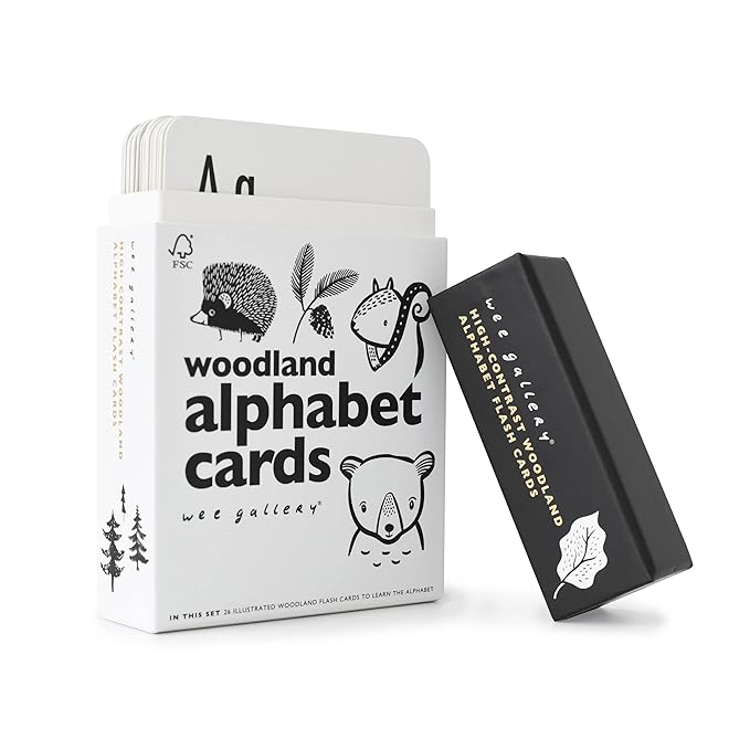 Wee Gallery Educational Flashcards for Babies, Double Sided Black and White Learning Flash cards, Woodland Animal Alphabet Cards for Visual Stimulation and Cognitive Development of Toddlers