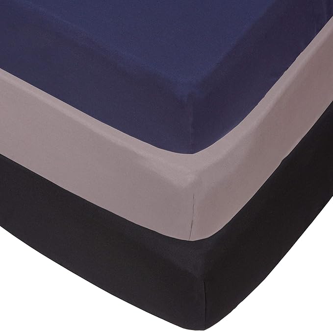 Belsden 3 Pack Microfiber Durable Crib Sheets Fitted, Silky Soft Smooth Breathable Baby Sheets Set, 28''x52'' Fits Standard Crib and Toddler Mattresses, Navy & Grey & Black
