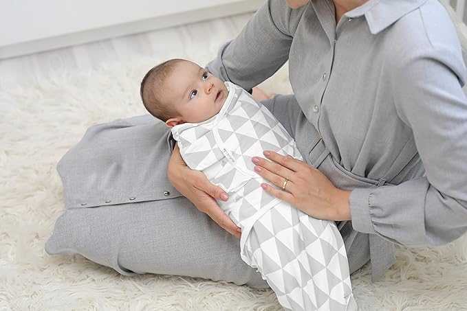 BaeBae Goods Swaddle Blanket, Adjustable Infant Baby Swaddling Wrap Set of 4, Baby Swaddling Wrap Blankets for Boys and Girls Made in Soft Cotton (Grey Triangles, 0-3 Months)