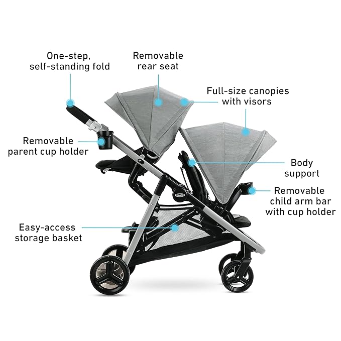 - Includes two stroller seats, a bench seat, and a standing platform for multiple options as your family grows