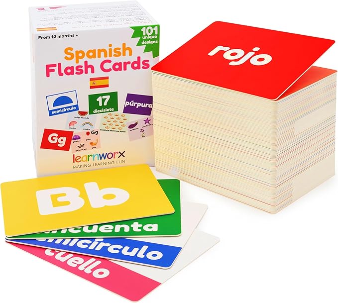 - 101 Spanish Flash Cards For Toddlers - Children love to learn and at Learnworx we love learning with them. The My First Flashcards set consists of 101 uniquely designed double sided flash cards featuring letters of the alphabet, shapes, colors, body parts and numbers. Keep cards safe in the thick gift box provided.