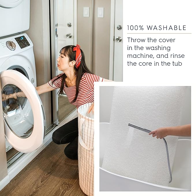 - 100% WASHABLE – Both the machine‑washable cover and rinse‑clean polymer core make cleanup easy after spills or blowouts—no special tools or dry-cleaning needed