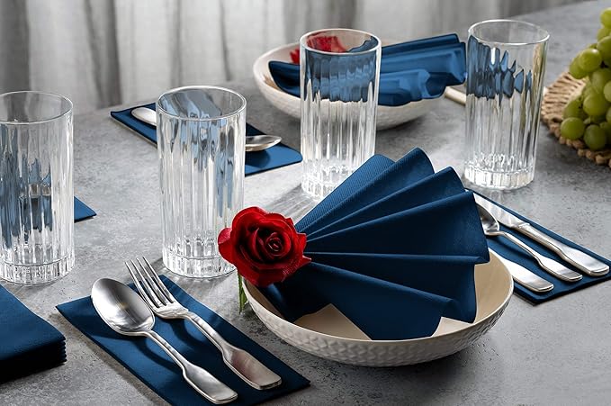 100 Linen-Feel Colored Paper Napkins - Decorative Cloth-Like Dark Blue Dinner Napkins - Soft And Absorbent. For Kitchen, Party, Wedding, Bathroom Or Any Occasion. (Pack of 100)