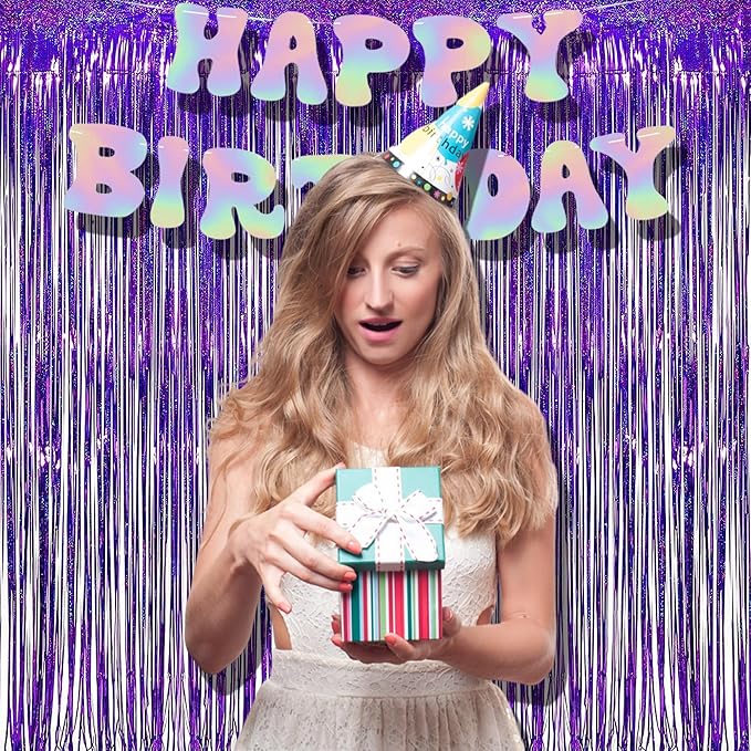 BRAVESHINE Purple Tinsel Foil Fringe Curtains - 2Pcs 3.2x8.2ft Metallic Holidays Photo Backdrop for Halloweens Birthdays Valentine's Bridal Shower Bachelorette Anniversary Engagement Party Supplies