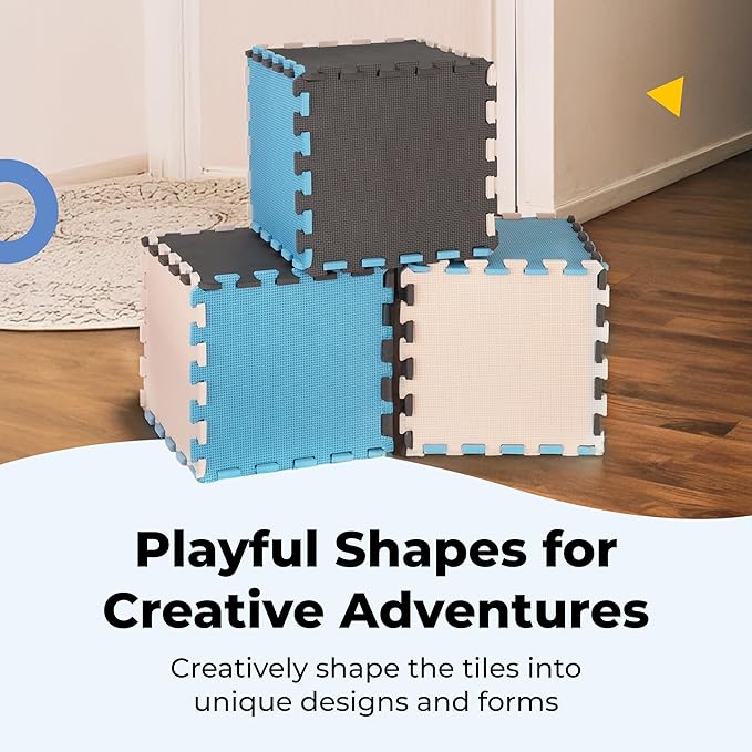 - π΄ EASY-TO-ASSEMBLE INTERLOCKING FOAM TILES: Our 12.4 x 12.4-inch interlocking foam tiles fit securely together, creating a customised play area for any room. Choose from our 16-piece set (covers 16 sq ft) or 36-piece set (covers 36 sq ft), each with matching borders for a polished look.