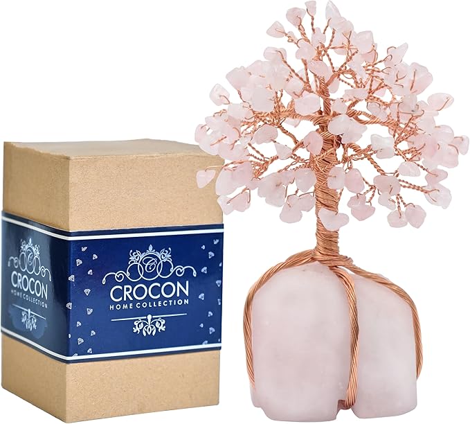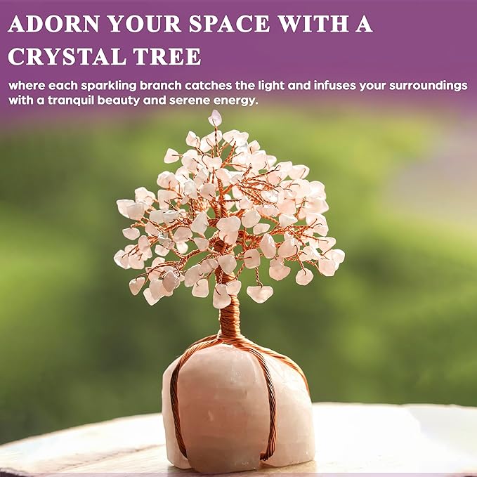 - β¨ ROSE QUARTZ GEMSTONE TREE: This Feng Shui Rose Quartz Gemstone Tree with Natural Rose Quartz Stone Base, Total Size for crystal tree is approximately 5.5"- 6.5", Weight range from 350-400 grams, Size for the Natural Stone base is approximately 2-2.5", Copper Wire. The Tree symbolizes stability, growth, as well as a long life blessed with abundance, It will help you to attract all good things.