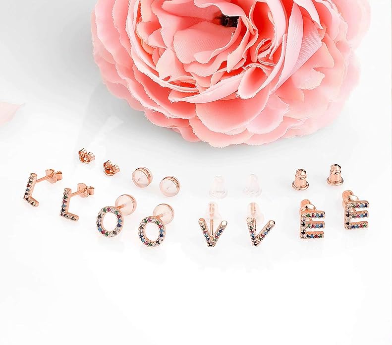 Memorjew Initial Stud Earrings for Women, Hypoallergenic 925 Sterling Silver Post Rainbow Cubic Zirconia Gold Plated 26 Initial Earrings for Women Jewelry Gifts