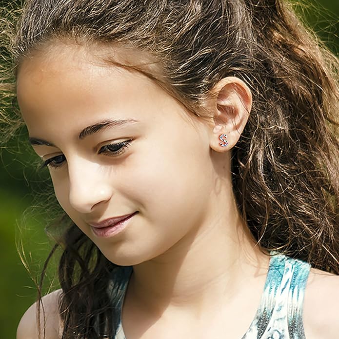 • SIZE: 0.28"/7mm x 0.31"/8mm A initial pave with Cubic Zirconia. Lightweight and comfortable, post earrings are nice for women earlobe, and can also be worn in a second hole.