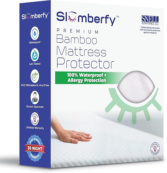 - BAMBOO MATTRESS PROTECTOR: Slumberfy has developed a hypoallergenic Mattress Protector, with a focus on keeping your family’s mattresses safe from liquid spills, sweat, dust and unhealthy allergens that may be lurking in their mattress. Less dust and dirt in your mattress equals a better night’s sleep, every time!