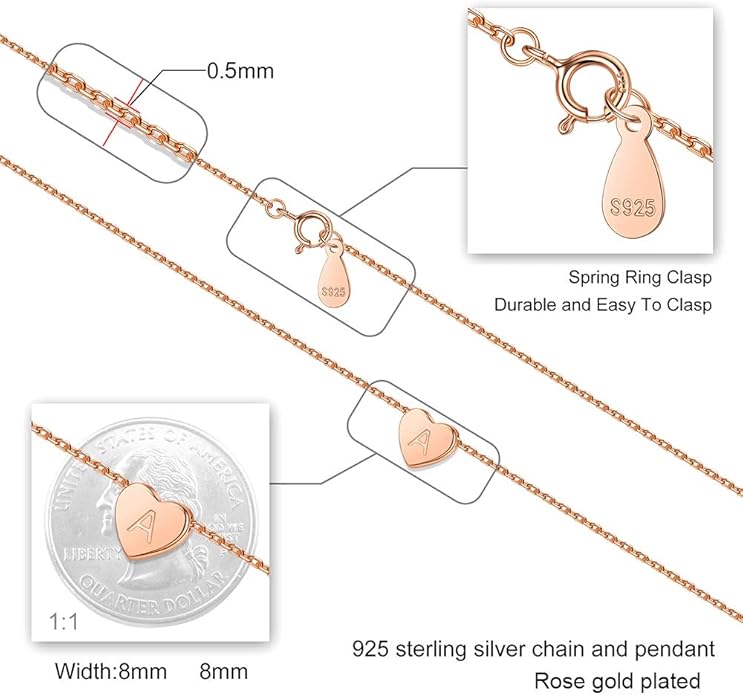 - SIZE: Size of the sterling silver initial necklace is 16"+2.5" adjustable chain, tiny heart initial necklace, perfect birthday gifts for girls teen girl.