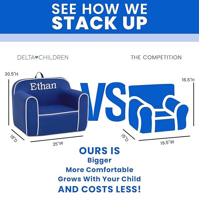 Delta Children Personalized Cozee Chair – Customize with Name – Foam Kids Chair for Ages 18 Months and Up, Blue/White