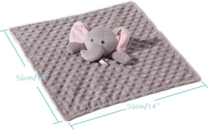 CREVENT Cozy Plush Baby Security Blanket Loveys for Baby Boys and Girls, Minky Dot Front + Sherpa Backing with Animal Face (Grey Elephant)