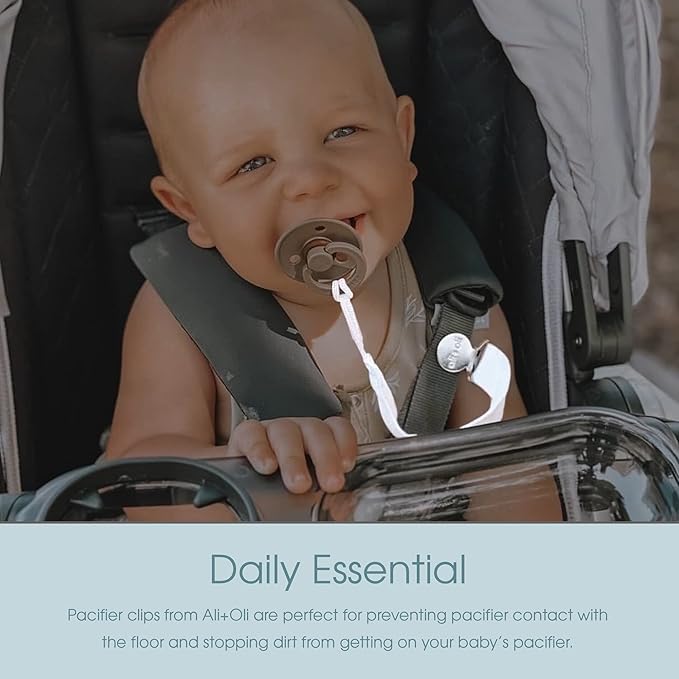 - SAFETY REMINDER: Ali+Oli's pacifier clips are not toys. Please do not leave children unattended when using the pacifier clip. Always inspect the clip before using it to ensure none of the pieces have come loose. The buyer assumes full responsibility for using this product.